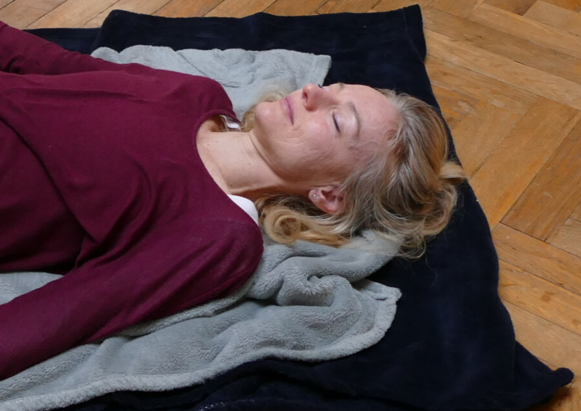Pozývam vás, aby ste ešte chvíľu zostali so zavretými očami. Ak potrebujete, môžete si k tomu aj ľahnúť a dovoľte si vnímať. Vnímať váš vnútorný svet. Vnímať, kde vás pozýva. Kde ťahá vašu vnútornú všímavosť. Áno, možno zaspíte, dovoľte si to, lebo to znamená, že to potrebujete. A možno po dlhšom ležaní v tichu zistíte, že si vás privolá nejaký orgán alebo kĺb, ktorý potrebuje ošetriť. Potrebuje ošetriť vašou plnou prítomnosťou v ňom. Táto plná prítomnosť vytvára priestor. Možno doslova pocítite ako sa uvoľňuje a mäkne tkanivo okolo tohoto miesta, ako sa tam dostáva dych, možno teplo. Zostávajte tam tak dlho, ako si vás to miesto bude žiadať.
